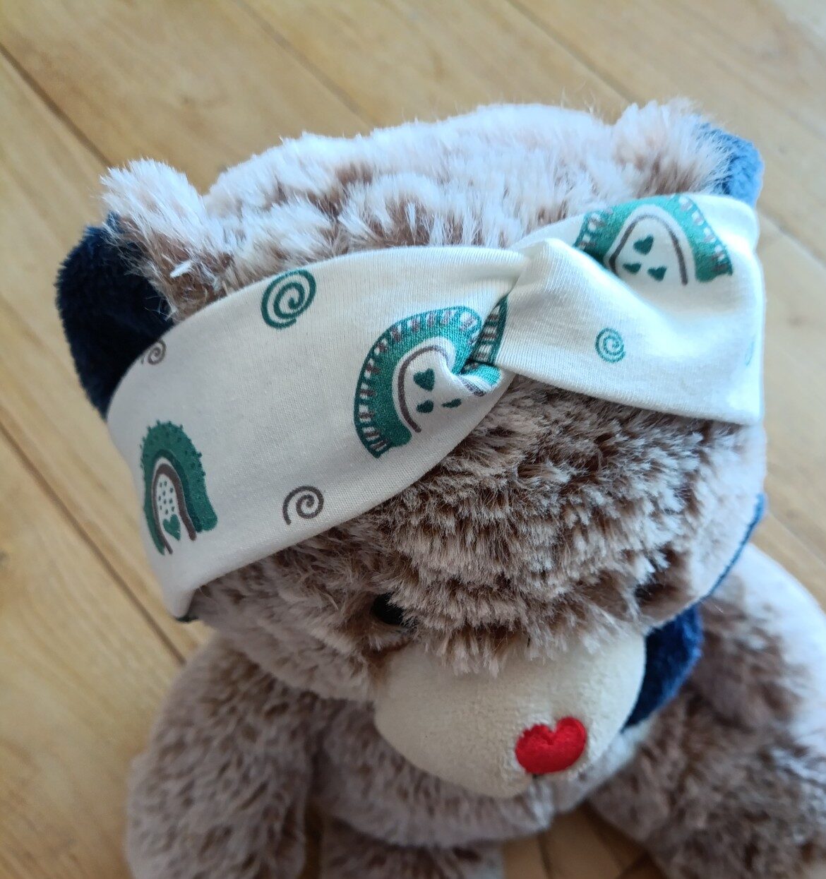 Apportez une touche de douceur et de style à la tenue de votre bébé avec ce joli bandeau à motif arc-en-ciel vert.