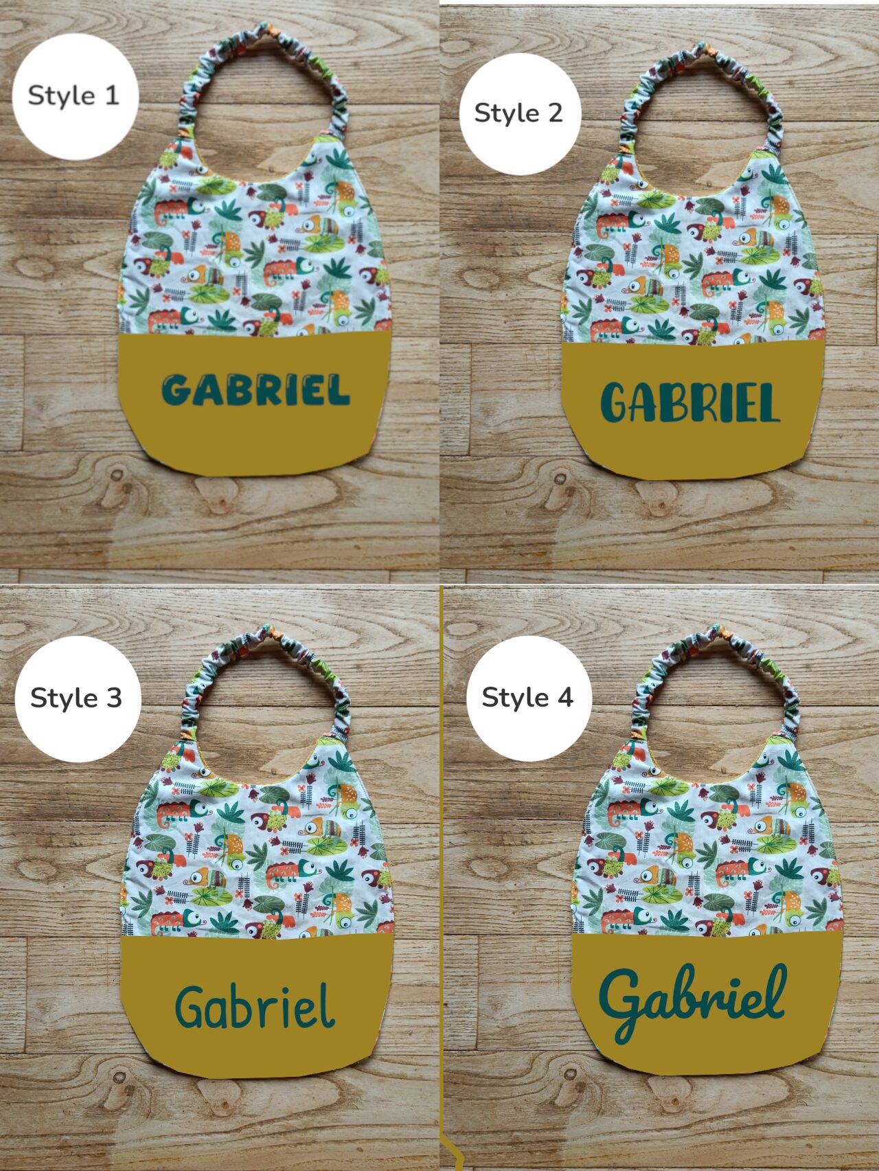 ✨ Le petit plus ? Ce bavoir peut être personnalisé avec le prénom de l’enfant grâce à un transfert thermocollant de qualité, qui résiste parfaitement aux lavages.